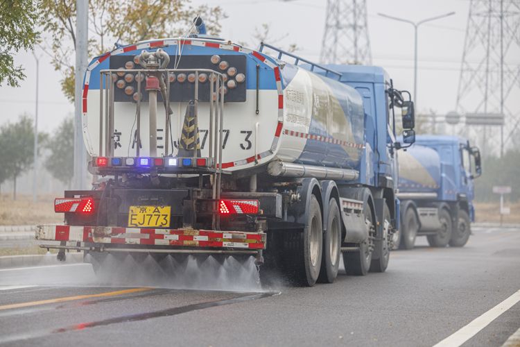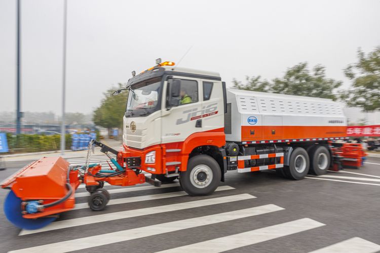 主路大幅减少使用融雪剂作业模式演练环节,加装低氯低钠融雪液的洗地车对路面进行湿化处理。水车后方增加喷头,改装喷头的宽度小于车身宽度,确保融雪液不会飞溅至绿化带。